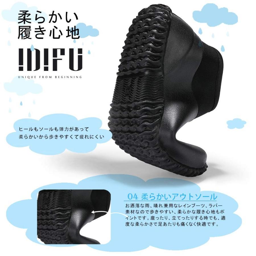 Idifu レディース 歩きやすい 超軽量 柔らかい ラウンドトウ 滑り止め 梅雨対策 レインブーツ ブラック